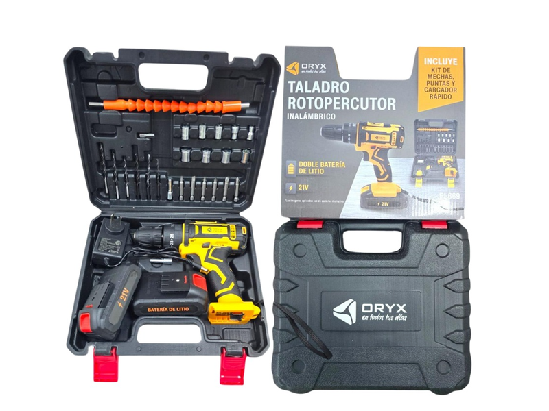 Taladro Rotopercutor Oryx Inalámbrico | 2 Baterías + Accesorios